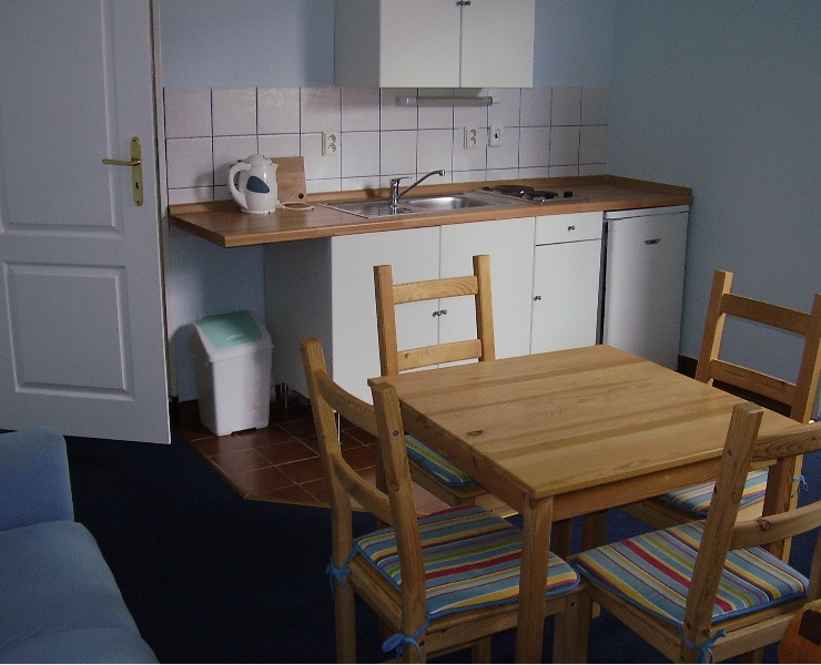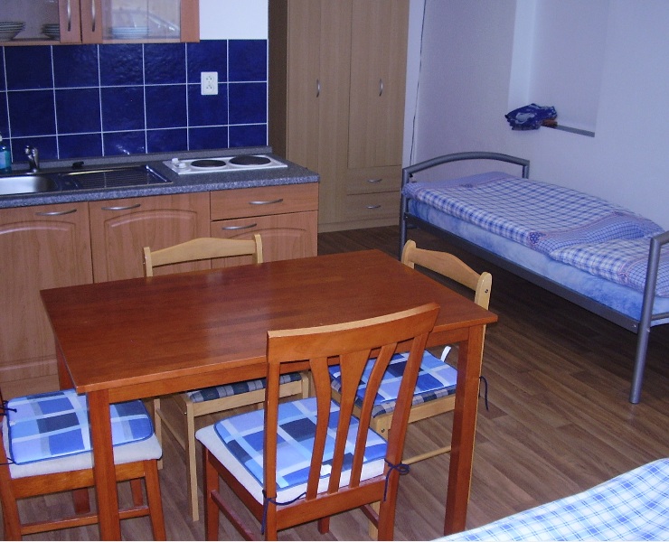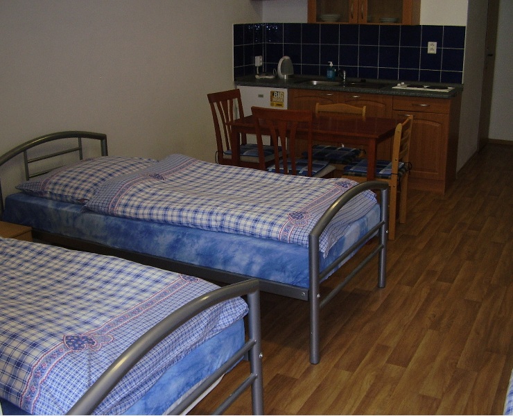 Nově přestavěný penzion s kapacitou 27 lůžek: 11 pokojů (většina 2-lůžkových) + 3 apartmány (2-lůžkový s přistýlkou, 2-lůžkový s 2 přistýlkami, dvoupokojový 3-lůžkový s přistýlkou). V každém pokoji je malá kuchyňka, koupelna + WC, lednice a TV. Připojení k Internetu. Možnost úschovy kol.