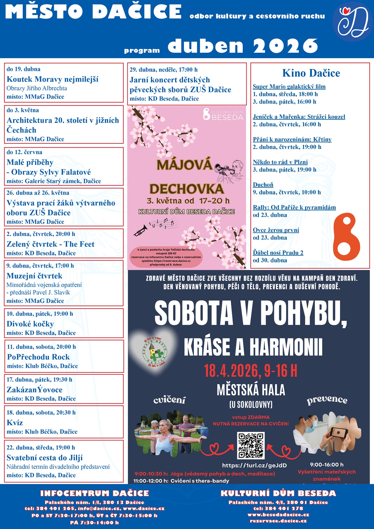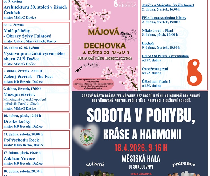 Přehled kulturních akcí na měsíc duben v Dačicích