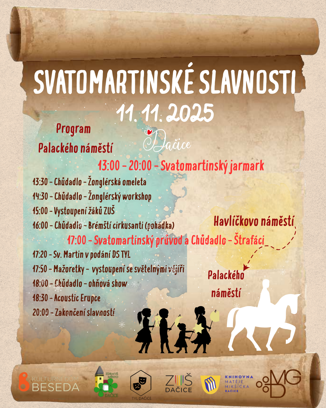 Knihovna Matěje Mikšíčka, Muzeum a galerie Dačice, Beseda Dačice a Zdravé město Dačice vás srdečně zvou na tradiční Svatomartinské slavnosti.