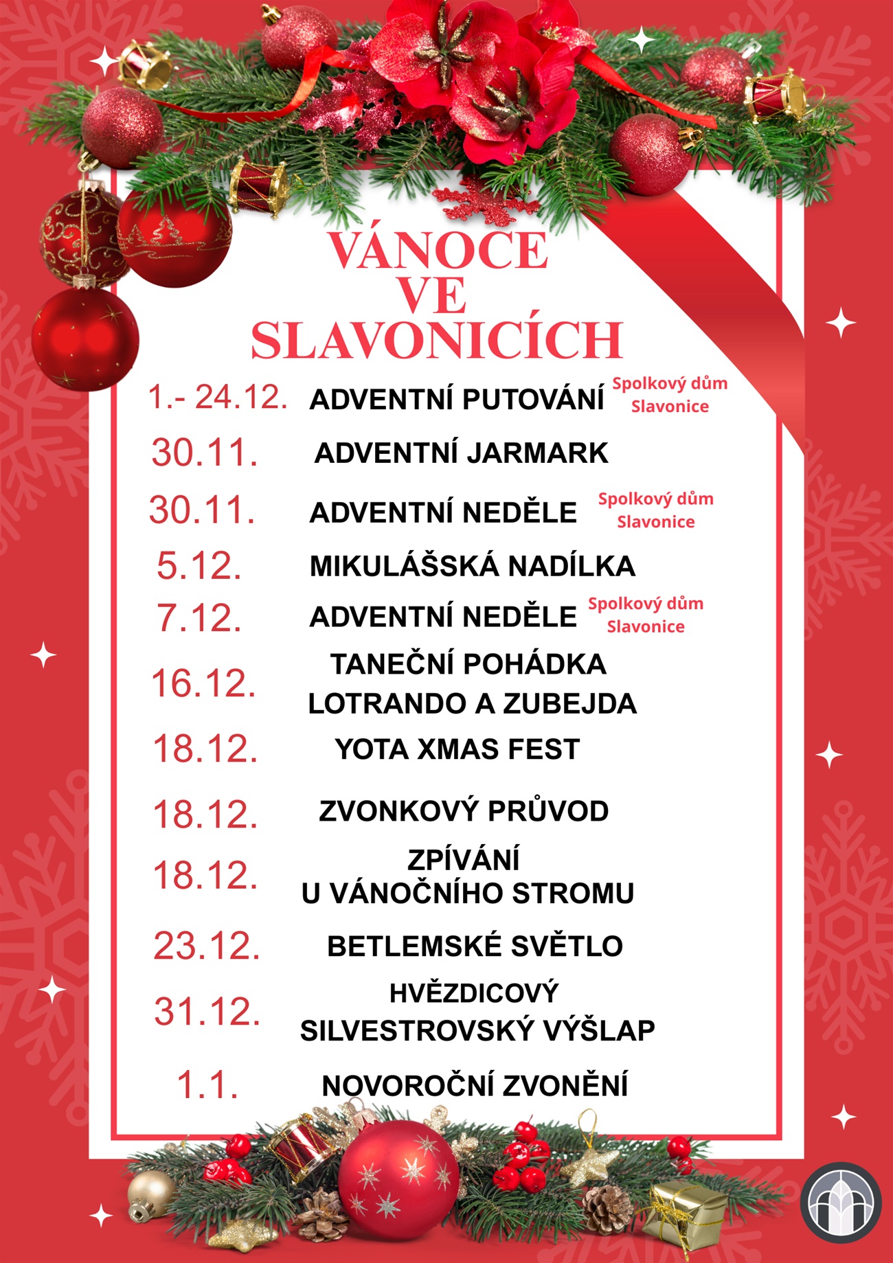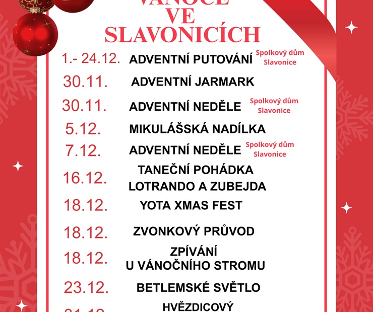 Přehled vánočních akcí ve Slavonicích.